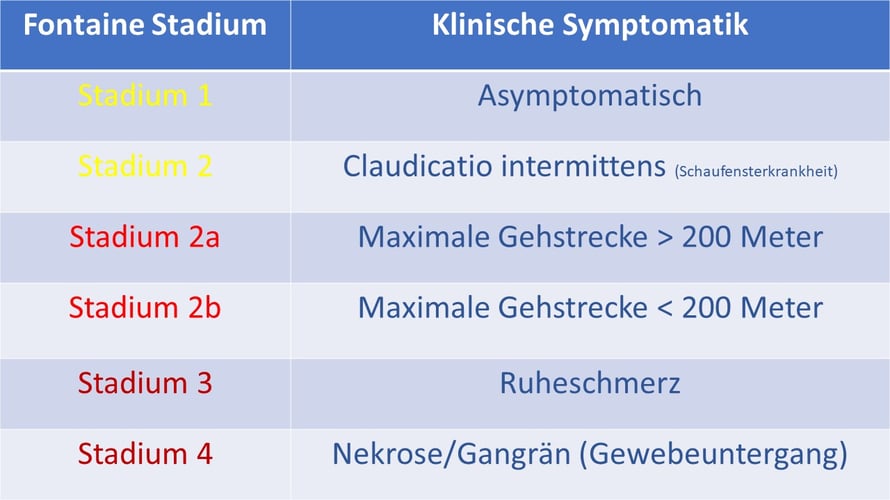 Welche Stadien gibt es bei einer peripheren arteriellen Verschlusskrankheit?